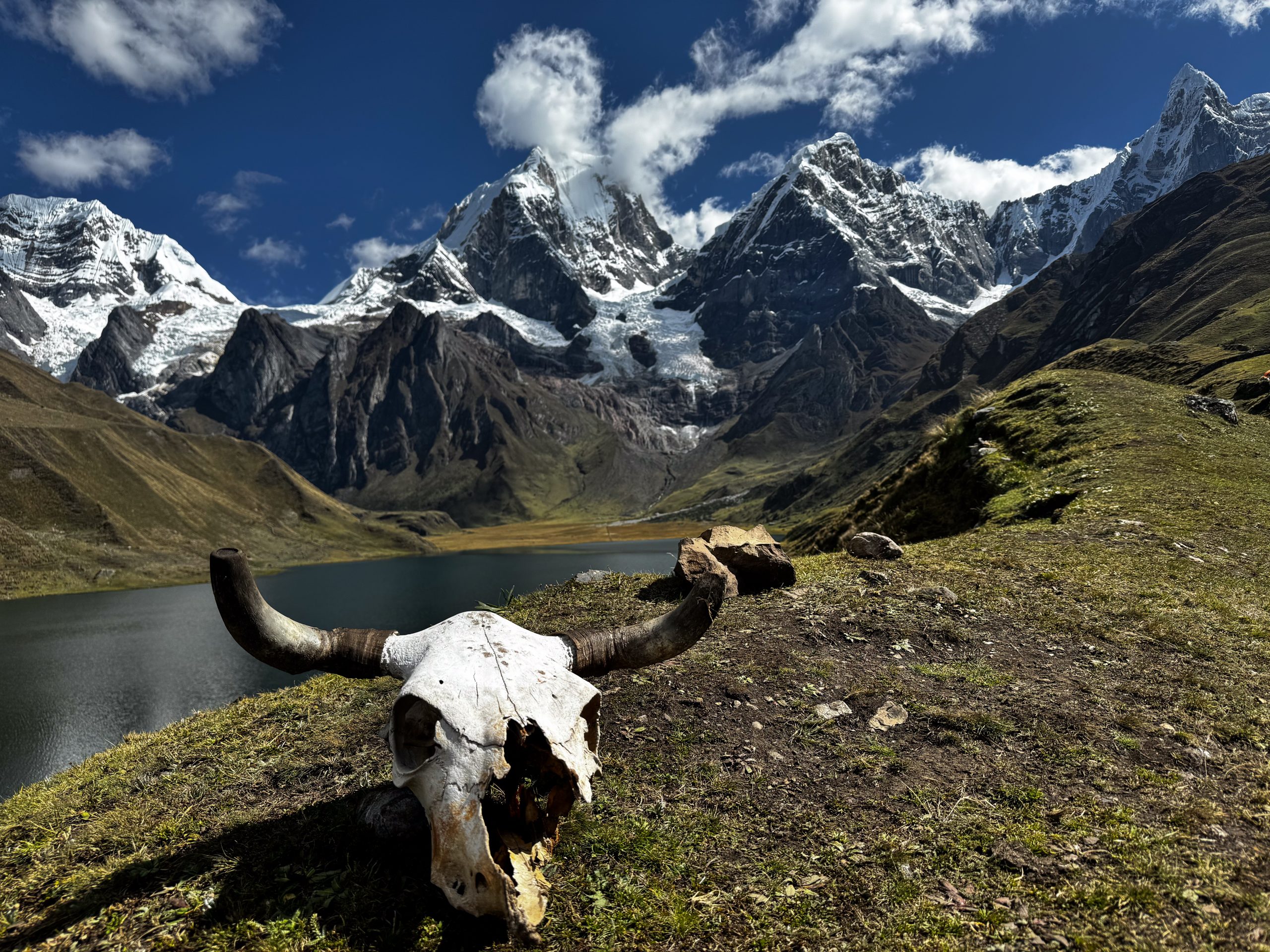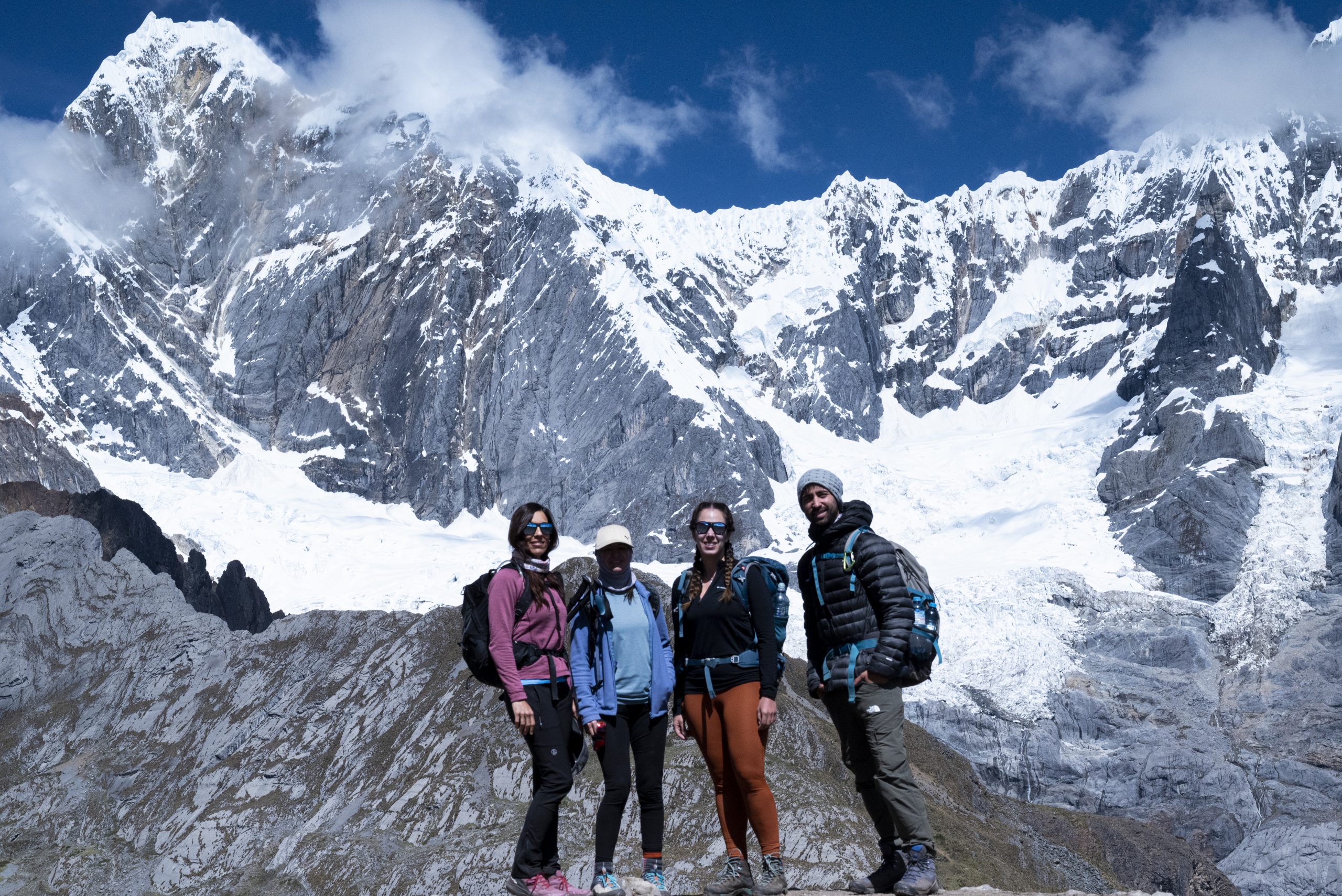 Nuestro quinto día de viaje iniciará después de un buen desayuno con unas vistas inmejorables, tras el cual ascenderemos al segundo paso de altura, el Carhuac (4650m). Atravesaremos un precioso valle que se va abriendo hasta dejarnos ver desde su collado las espectaculares caras este del Yerupajá (6636m), la segunda montaña más alta del Perú, y el Siulá grande (6354m), una de las montañas más difíciles de ascender y que ha sido protagonista de la película basada en hechos reales “Tocando el Vacío”, de Joe Simpson.